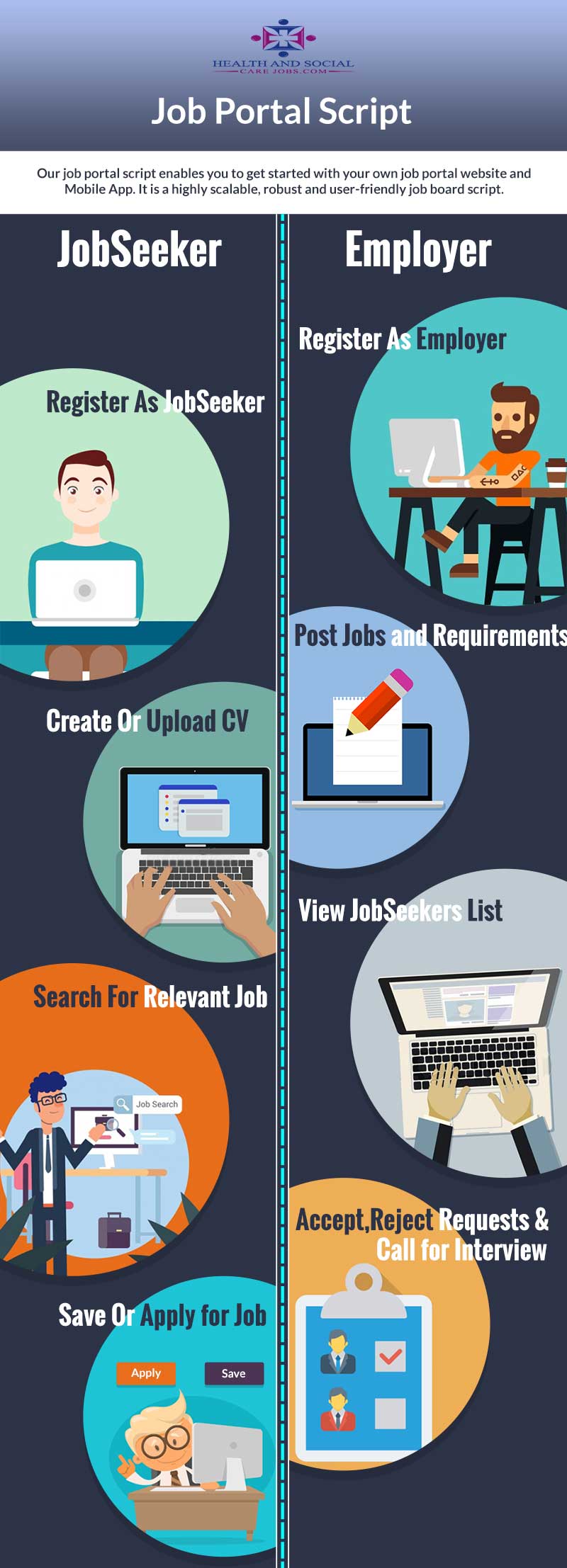We believe that finding and hiring Health and Social care professionals should not be a time-consuming and costrly process for employers. Similarly, job searching in the Health and Social care sectore should not be frustrating for job seekers.